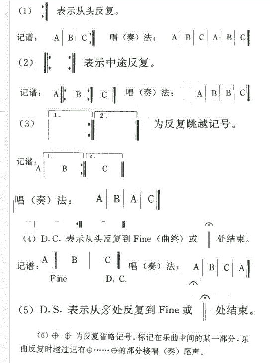 记谱法里面的常用反复记号
