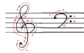 高音谱号也叫作G谱号,因为这个符号是字母G的花体,但是这个符号必须起笔在第二线上才叫做高音谱号,因为起笔在第二线的意思是定义这条线的音高是G~