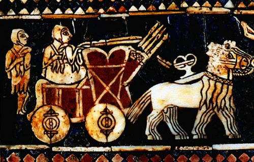 令人欣幸的是,考古学家们在乌鲁的墓地,发掘到几件乐器的实物和几张描绘音乐情景的美术品。经过鉴定,它们的年代大约在公无前3500年左右。这些古物的出土,使人们对当时乐器的构造,有了相当程度的了解;同时对照当时的楔形文字的文献,人们推知出了这些乐器的个别名称。