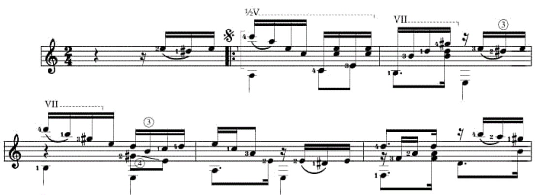 如今国际上比较流行的记谱方式是五线谱和六线谱双行记谱法,这也是吉他记谱法的发展趋势,比纯五线谱和纯六线谱都要好用得多。