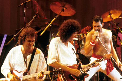 Queen 皇后乐队,英国最杰出的艺术华丽硬摇滚乐队,同性恋的主唱歌剧唱腔超绝,兼物理学家的主奏吉他技艺超前,歌曲传唱最经久不衰。