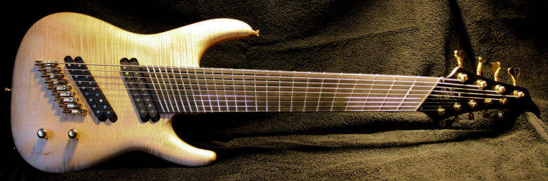 Djent吉他手通常必须使用多于6根弦的多弦吉他,只有这样才能演奏出更低沉更浑厚的低音失真节奏~~~