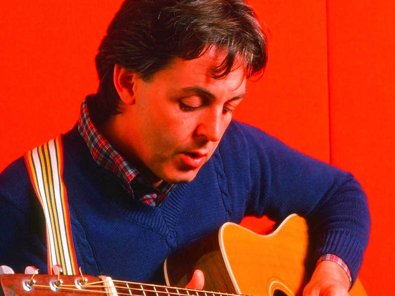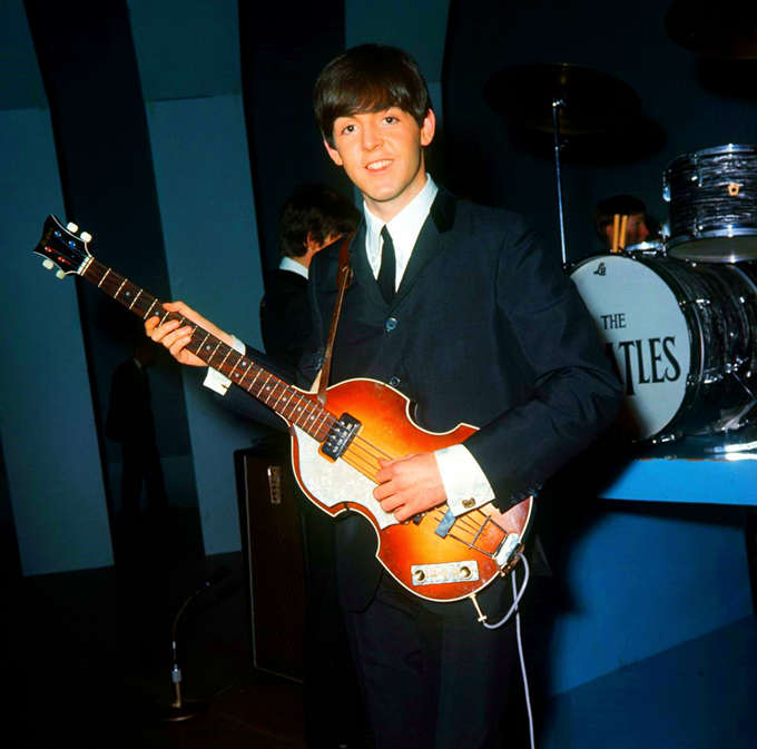 麦卡特尼弹吉他是左撇子。十四岁生日时收到父亲送来的镀镍小号,但当摇滚乐在卢森堡电台流行时,麦卡特尼用它换了一把 15 英镑的原声吉他,因为他希望能够边弹边唱歌。他发现右手弹吉他很困难,但在注意到一张宣传Slim Whitman音乐会的海报并意识到 Whitman 是左手演奏后,他颠倒了琴弦的顺序。