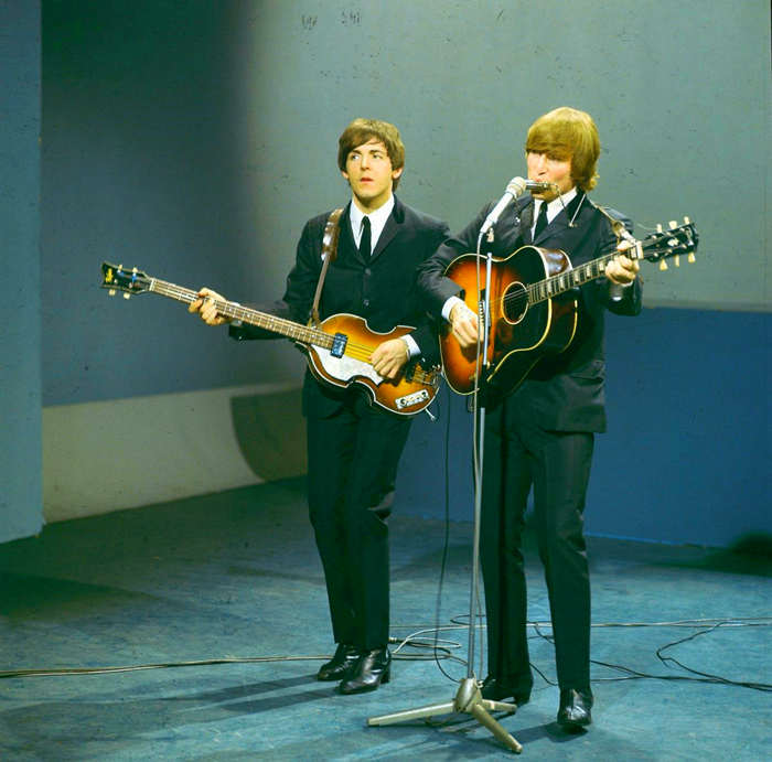 15岁的麦卡特尼在伍尔顿的圣彼得教堂礼堂会见了约翰列侬和他的乐队。 不久之后,乐队成员邀请麦卡特尼作为节奏吉他手加入,他与列侬建立了密切的工作关系。