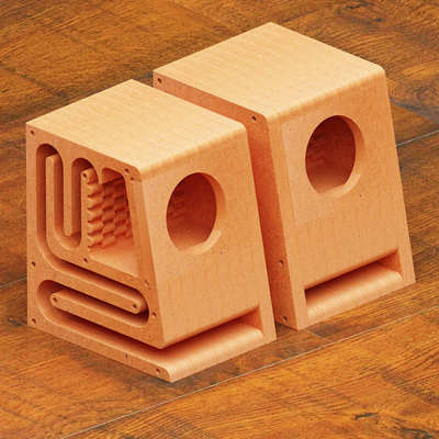 迷宫式音箱也叫作曲径式音箱或传输线型音箱。在喇叭单元的纸盆后面,制作了一条矩形截面的折叠反射管道,而同周围的介质相耦合,放声管道的截面积一般等于喇叭单元振膜的有效面积。