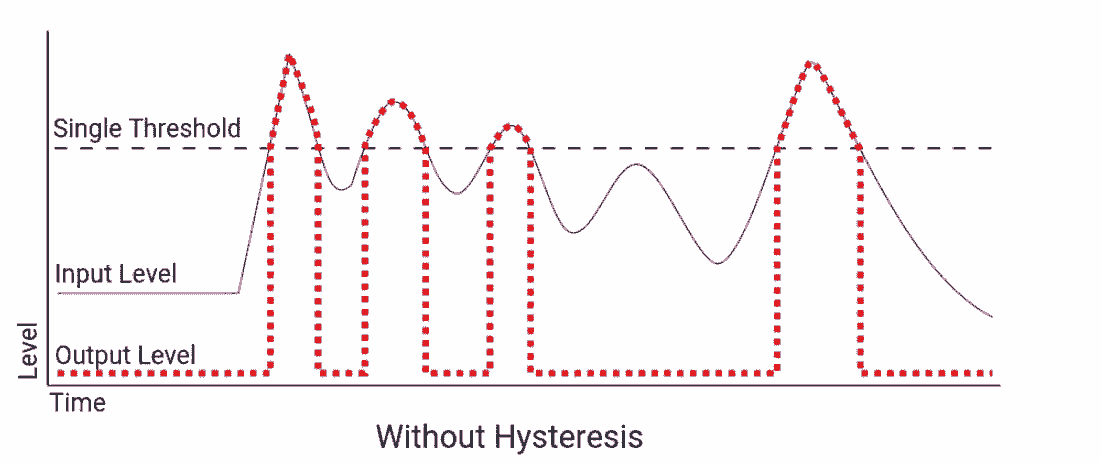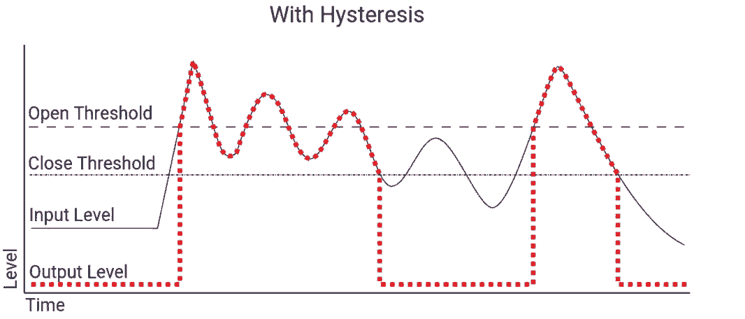 滞后区间(Hysteresis)——开门阈值与关门阈值: